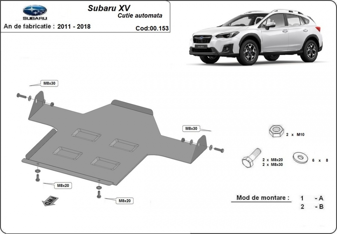 Acél automata kapcsolószekrény védőlemez Subaru XV (2011-2018)