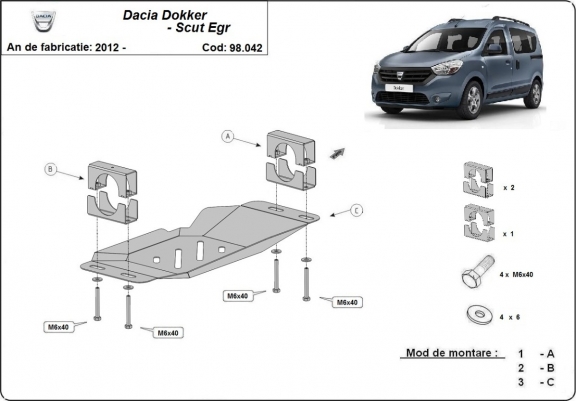 Acél EGR, STOP&GO rendszer védőlemez Dacia Dokker (2012-2020)