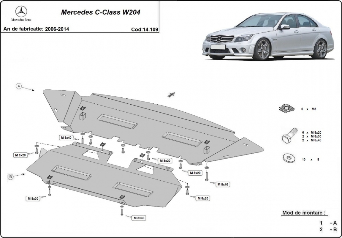 Acél motor, hűtő védőlemez Mercedes C-Class W204 (2006-2014)