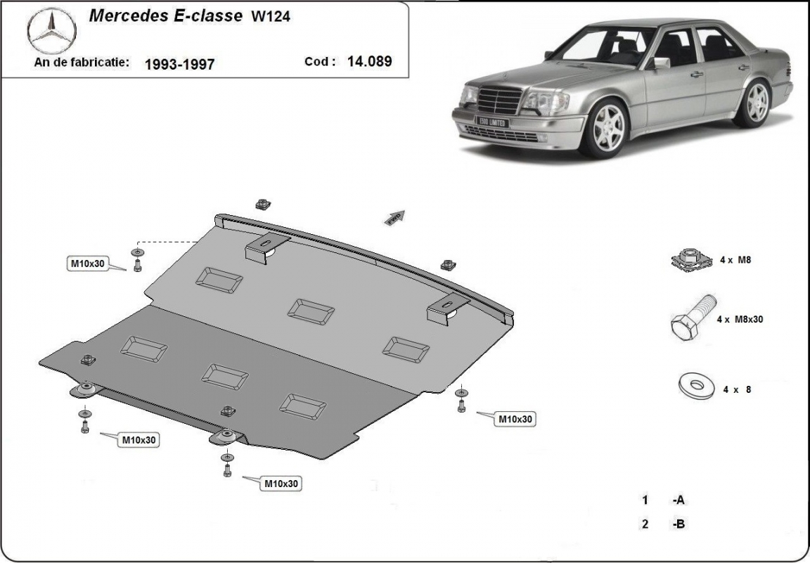 Acél motor, hűtő védőlemez Mercedes E-Classe W124 (1993-1997)