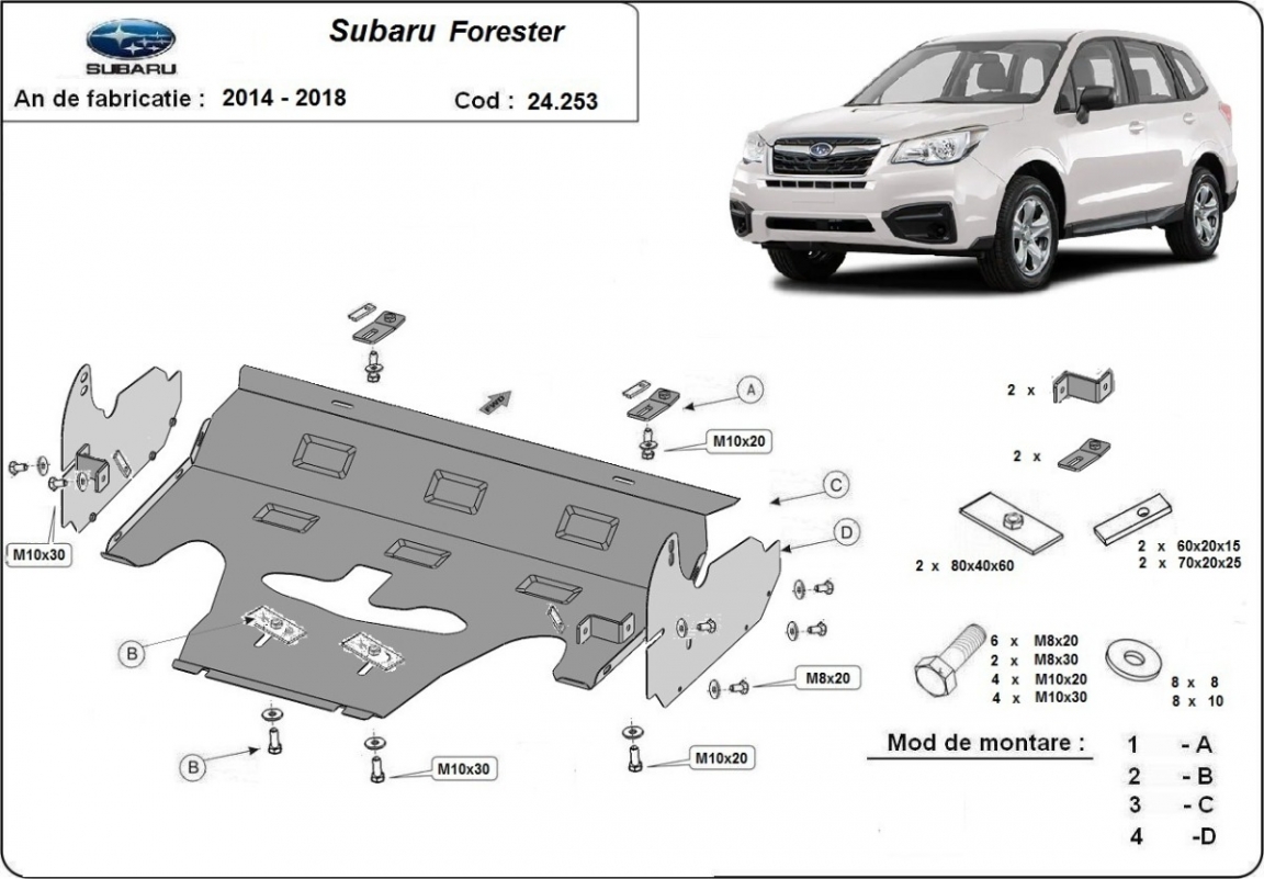 Acél motorvédő lemezünk a következőket védi: motor, radiátor A motorvédő lemez új, és tökéletesen illeszkedik a Subaru Forester 4 összes 2014 és 2018 között gyártott változatához. 2 mm vastag Acéllemezből készült. Gyárilag kialakított pontokhoz csatlakozik. Méretpontos, A38 H2H acéllemez Minden szükséges tartozék és csavar a csomagban! Minden motorvédőlemezünk porszórt bevonattal van ellátva(porfestett felület), hogy megakadályozza a korróziót. Méretpontos acél lemezekből készül. |