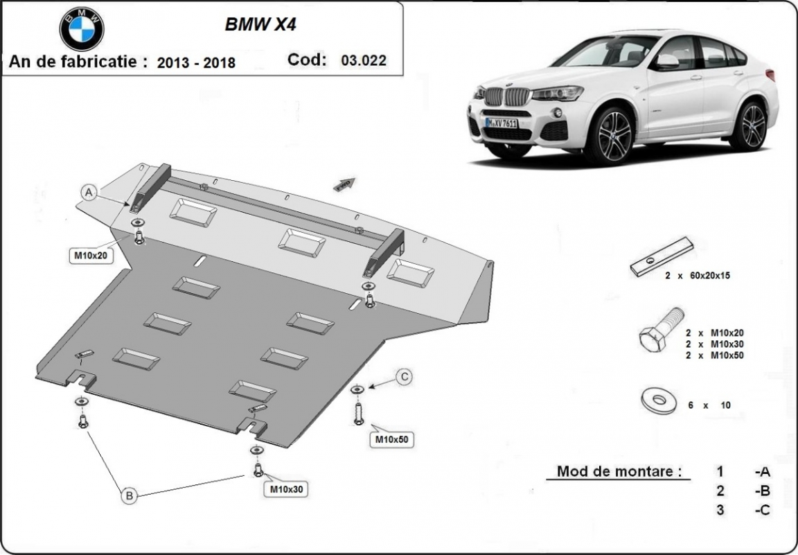 Acél motorvédő lemezünk a következőket védi: motor, radiátor, első lökharító A motorvédő lemez új, és tökéletesen illeszkedik a BMW X4 összes 2014 és 2018 között gyártott változatához. 2 mm vastag Acéllemezből készült. Gyárilag kialakított pontokhoz csatlakozik. Méretpontos, A38 H2H acéllemez Minden szükséges tartozék és csavar a csomagban! Minden motorvédőlemezünk porszórt bevonattal van ellátva(porfestett felület), hogy megakadályozza a korróziót. Méretpontos acél lemezekből készül. |