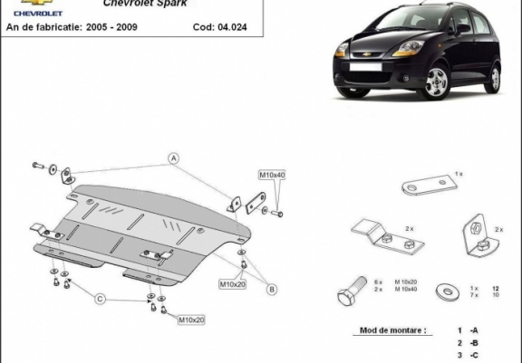Acél motor, kapcsolószekrény, hűtő védőlemez Chevrolet Spark