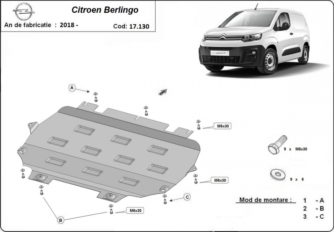 Acél motorvédő lemezünk a következőket védi: motor, kapcsolószekrény, radiátor A motorvédő lemez új, és tökéletesen illeszkedik a Citroen Berlingo összes 2018 és 2026 között gyártott változatához. 2 mm vastag Acéllemezből készült. Gyárilag kialakított pontokhoz csatlakozik. Méretpontos, A38 H2H acéllemez Minden szükséges tartozék és csavar a csomagban! Minden motorvédőlemezünk porszórt bevonattal van ellátva(porfestett felület), hogy megakadályozza a korróziót. Méretpontos acél lemezekből készül. |