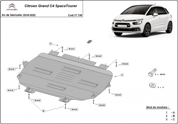 Acél motor, kapcsolószekrény, hütő védőlemez Citroen Grand C4 SpaceTourer (2018-2022)