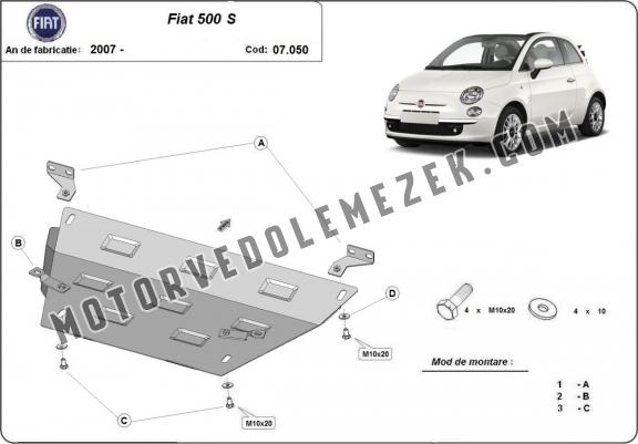 Acél motor, kapcsolószekrény, hütő védőlemez Fiat 500 S (2007-2025)
