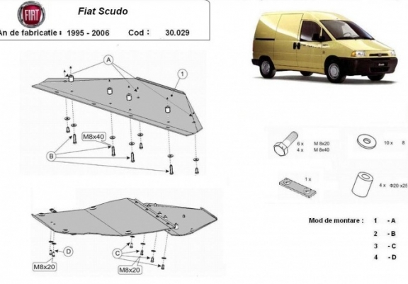 Acél motor, kapcsolószekrény, hűtő védőlemez Fiat Scudo