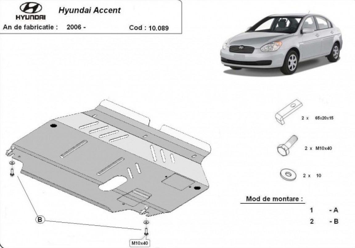 Acél motor, kapcsolószekrény, hűtő védőlemez Hyundai Accent (2005-2010)