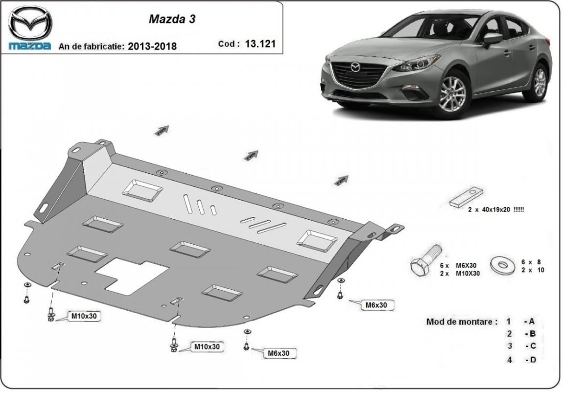 Acél motorvédő lemezünk a következőket védi: motor, kapcsolószekrény, radiátor A motorvédő lemez új, és tökéletesen illeszkedik a Mazda 3 összes 2013 és 2018 között gyártott változatához. 2 mm vastag Acéllemezből készült. Gyárilag kialakított pontokhoz csatlakozik. Méretpontos, A38 H2H acéllemez Minden szükséges tartozék és csavar a csomagban! Minden motorvédőlemezünk porszórt bevonattal van ellátva(porfestett felület), hogy megakadályozza a korróziót. Méretpontos acél lemezekből készül. |