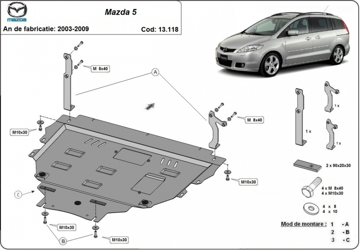 Acél motor, kapcsolószekrény, hütő védőlemez Mazda 5 (2003-2009)