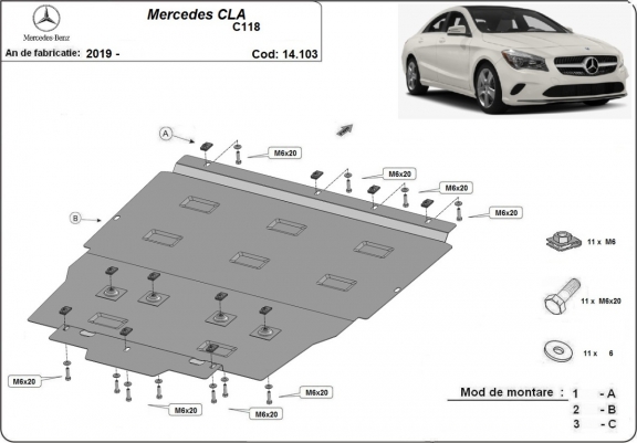 Acél motor, kapcsolószekrény, hűtő védőlemez Mercedes CLA C118 (2019-2026)