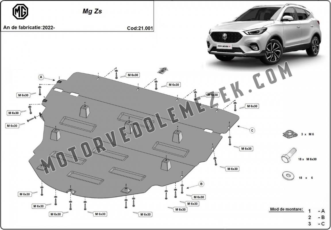 Acél motorvédő lemezünk a következőket védi: motor, kapcsolószekrény, radiátor A motorvédő lemez új, és tökéletesen illeszkedik a MG ZS összes 2022 és 2026 között gyártott változatához. 2 mm vastag Acéllemezből készült. Gyárilag kialakított pontokhoz csatlakozik. Méretpontos, A38 H2H acéllemez Minden szükséges tartozék és csavar a csomagban! Minden motorvédőlemezünk porszórt bevonattal van ellátva(porfestett felület), hogy megakadályozza a korróziót. Méretpontos acél lemezekből készül. |