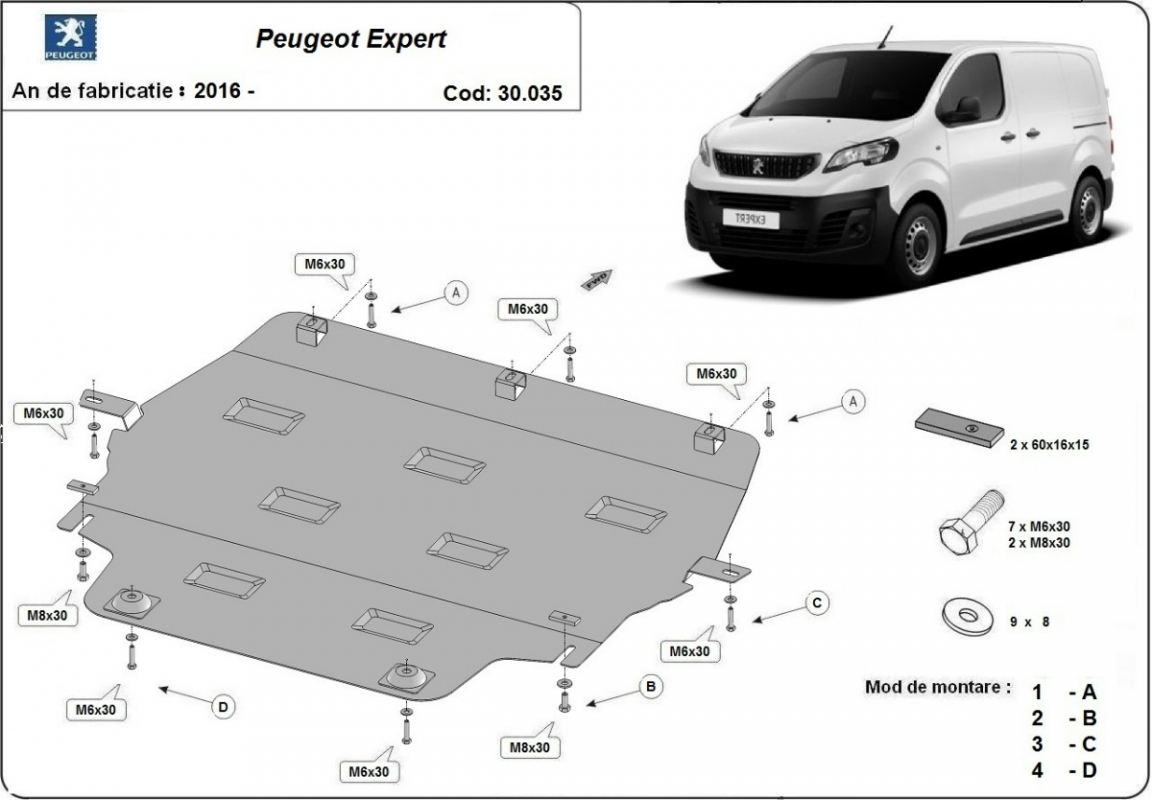 Acél motorvédő lemezünk a következőket védi: motor, kapcsolószekrény, radiátor A motorvédő lemez új, és tökéletesen illeszkedik a Peugeot Expert összes 2016 és 2026 között gyártott változatához. 2 mm vastag Acéllemezből készült. Gyárilag kialakított pontokhoz csatlakozik. Méretpontos, A38 H2H acéllemez Minden szükséges tartozék és csavar a csomagban! Minden motorvédőlemezünk porszórt bevonattal van ellátva(porfestett felület), hogy megakadályozza a korróziót. Méretpontos acél lemezekből készül. |