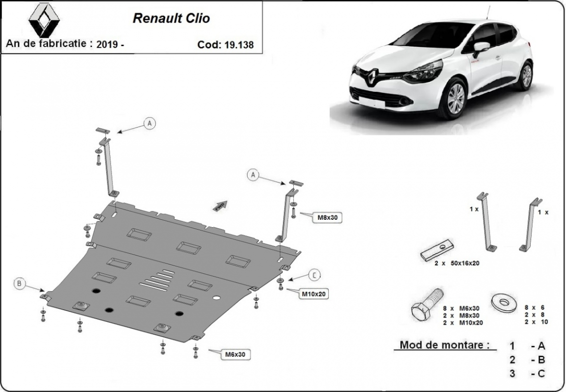 | Minden autóban gyári csavarlyukak vannak a motorvédő lemez felszereléséhez, ami nagyon egyszerűvé teszi a felszerelést. Ezt megteheti saját maga, vagy bármely autószervizben. |