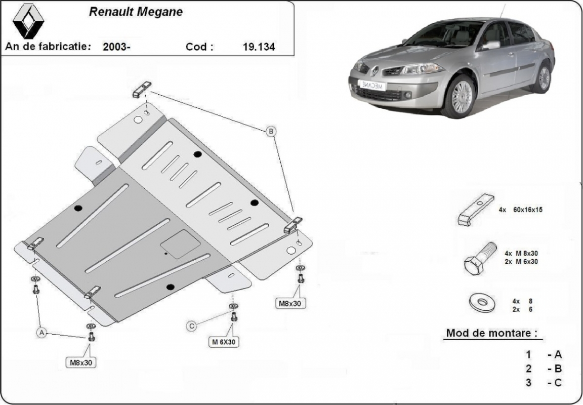 | Minden autóban gyári csavarlyukak vannak a motorvédő lemez felszereléséhez, ami nagyon egyszerűvé teszi a felszerelést. Ezt megteheti saját maga, vagy bármely autószervizben. |