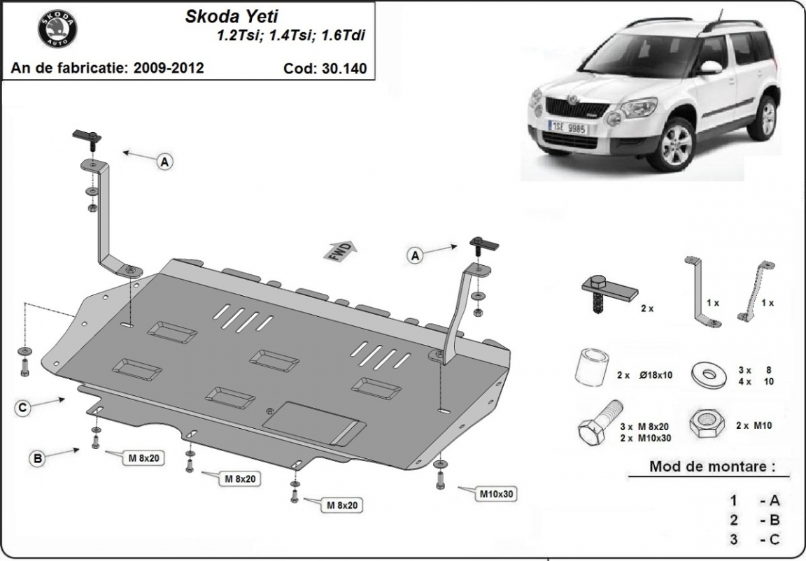 | Minden autóban gyári csavarlyukak vannak a motorvédő lemez felszereléséhez, ami nagyon egyszerűvé teszi a felszerelést. Ezt megteheti saját maga, vagy bármely autószervizben. |