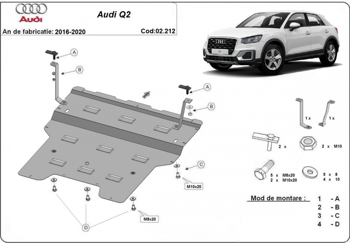 Acél motor, kapcsolószekrény, hűtő védőlemez Audi Q2 (2016-2020)