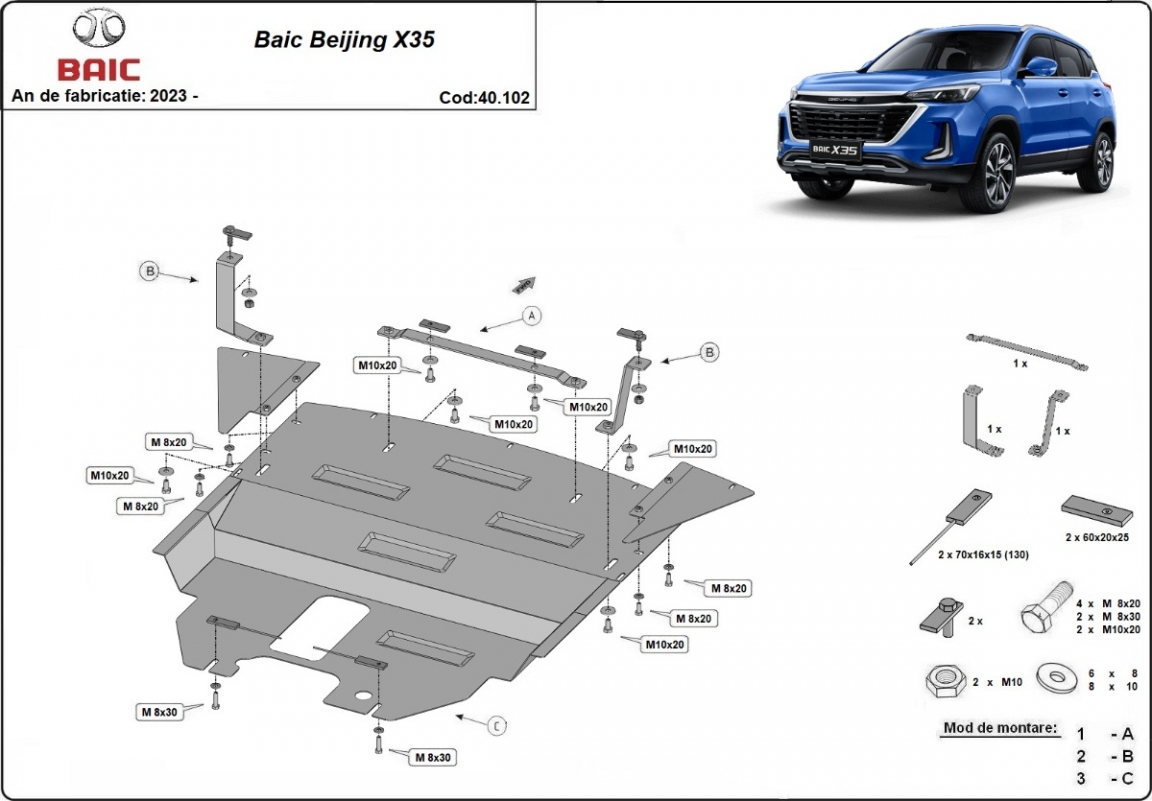 Acél motor, kapcsolószekrény, hűtő védőlemez Baic Beijing X35 (2023-2026)
