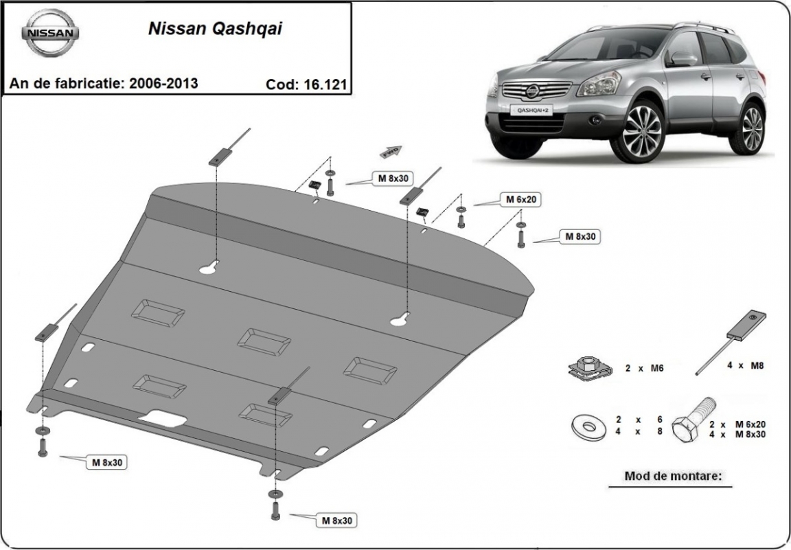 | Minden autóban gyári csavarlyukak vannak a motorvédő lemez felszereléséhez, ami nagyon egyszerűvé teszi a felszerelést. Ezt megteheti saját maga, vagy bármely autószervizben. |