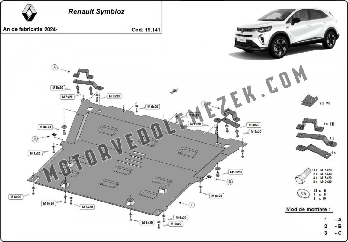 Acél motor, kapcsolószekrény, hütő védőlemez Renault Symbioz (2024-2025)