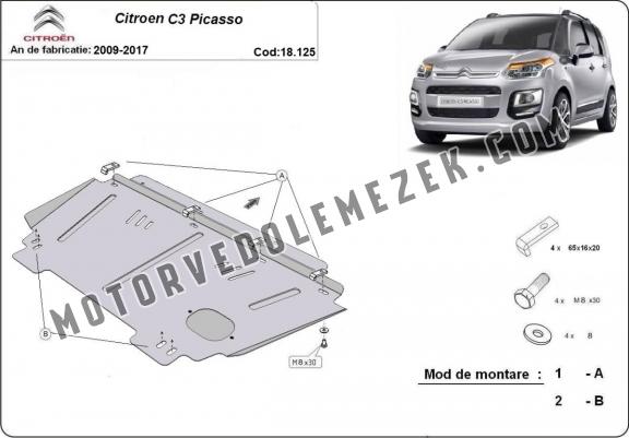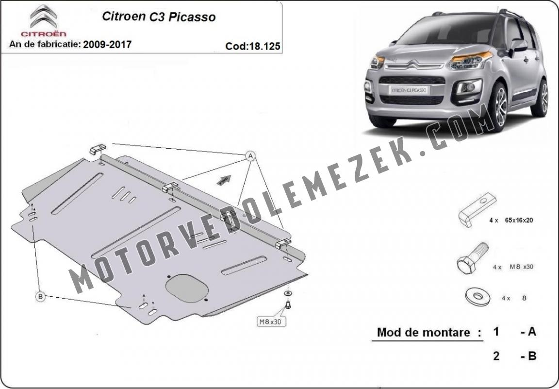 Acél motor, kapcsolószekrény védőlemez Citroen C3 Picasso (2009-2017)
