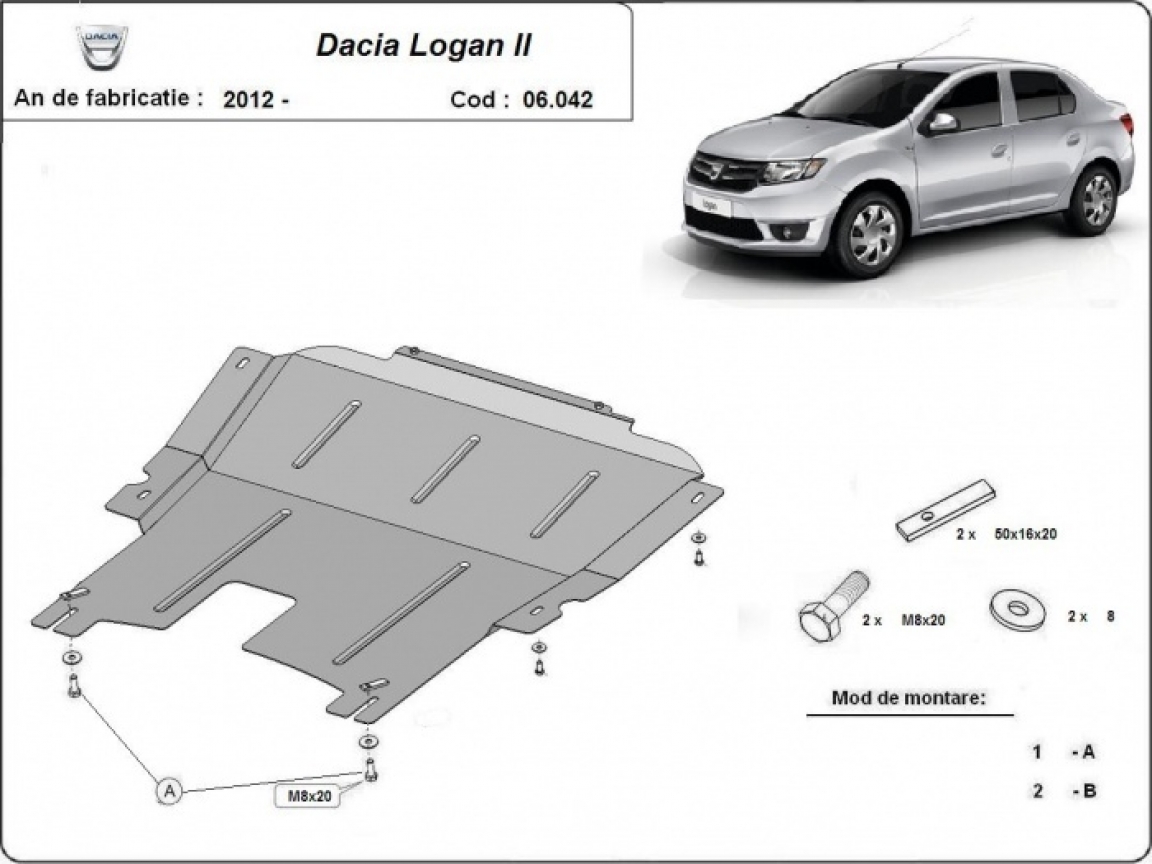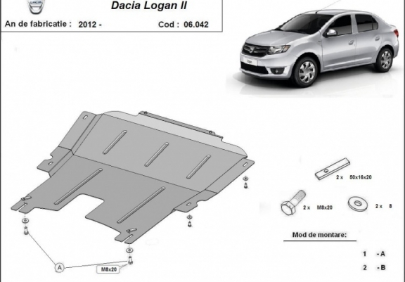 Acél motor, kapcsolószekrény védőlemez Dacia Logan 2 (2012-2020)
