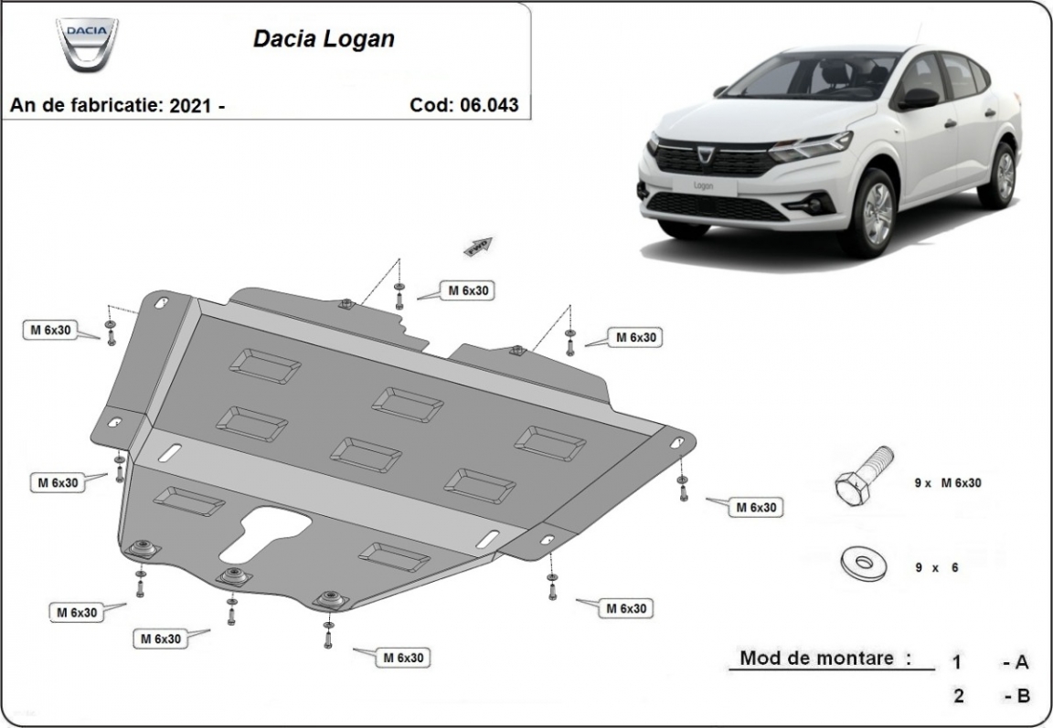 Acél motorvédő lemezünk a következőket védi: motor, kapcsolószekrény A motorvédő lemez új, és tökéletesen illeszkedik a Dacia Logan összes 2021 és 2026 között gyártott változatához. 2 mm vastag Acéllemezből készült. Gyárilag kialakított pontokhoz csatlakozik. Méretpontos, A38 H2H acéllemez Minden szükséges tartozék és csavar a csomagban! Minden motorvédőlemezünk porszórt bevonattal van ellátva(porfestett felület), hogy megakadályozza a korróziót. Méretpontos acél lemezekből készül. |