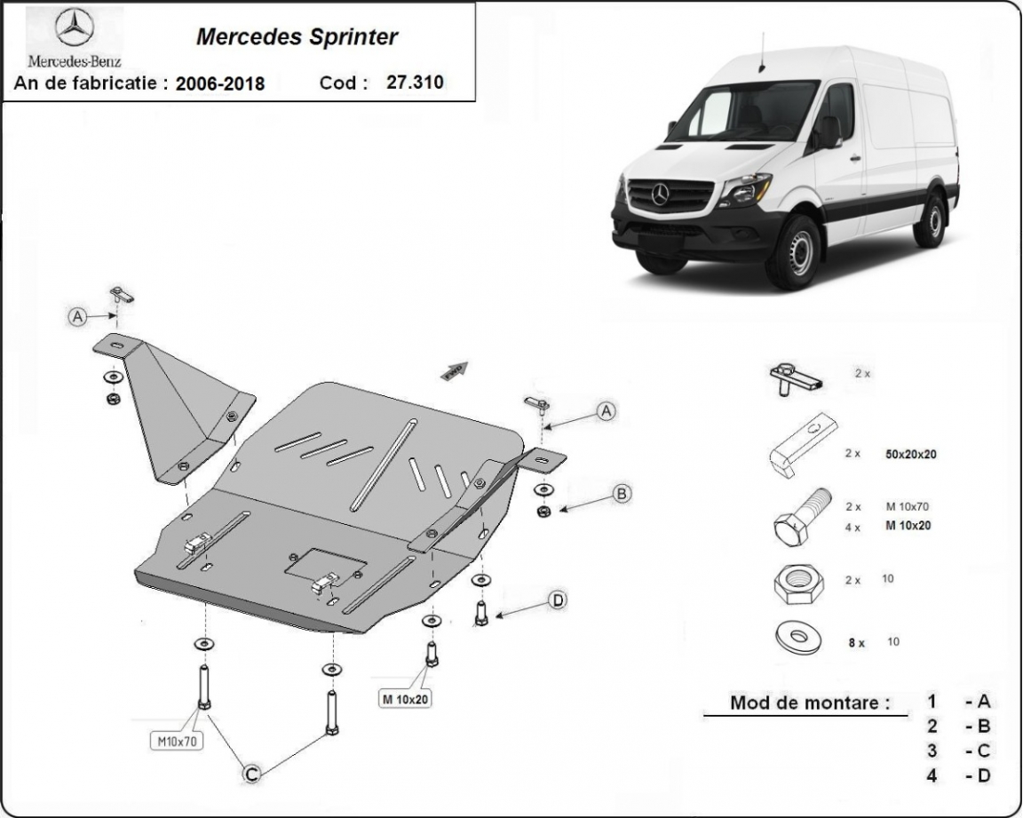 Acél motorvédő lemezünk a következőket védi: motor, kapcsolószekrény A motorvédő lemez új, és tökéletesen illeszkedik a Mercedes Sprinter összes 2006 és 2018 között gyártott változatához. Nyílás van rajta az olajteknő számára, így az olajcseréhez nem lesz szükség az eltávolításra. 3 mm vastag Acéllemezből készült. Gyárilag kialakított pontokhoz csatlakozik. Méretpontos, A38 H2H acéllemez Minden szükséges tartozék és csavar a csomagban! Minden motorvédőlemezünk porszórt bevonattal van ellátva(porfestett felület), hogy megakadályozza a korróziót. Méretpontos acél lemezekből készül. |