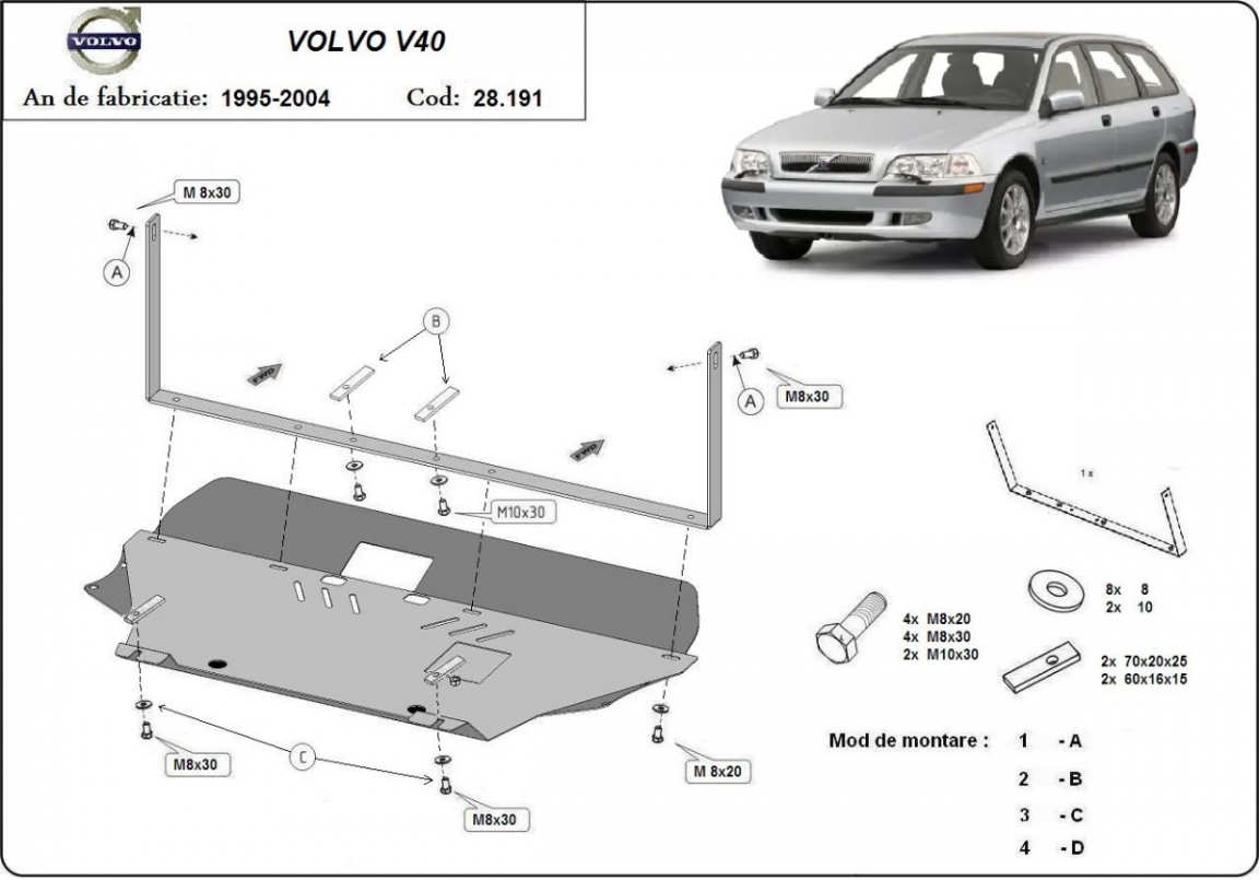 | Minden autóban gyári csavarlyukak vannak a motorvédő lemez felszereléséhez, ami nagyon egyszerűvé teszi a felszerelést. Ezt megteheti saját maga, vagy bármely autószervizben. |