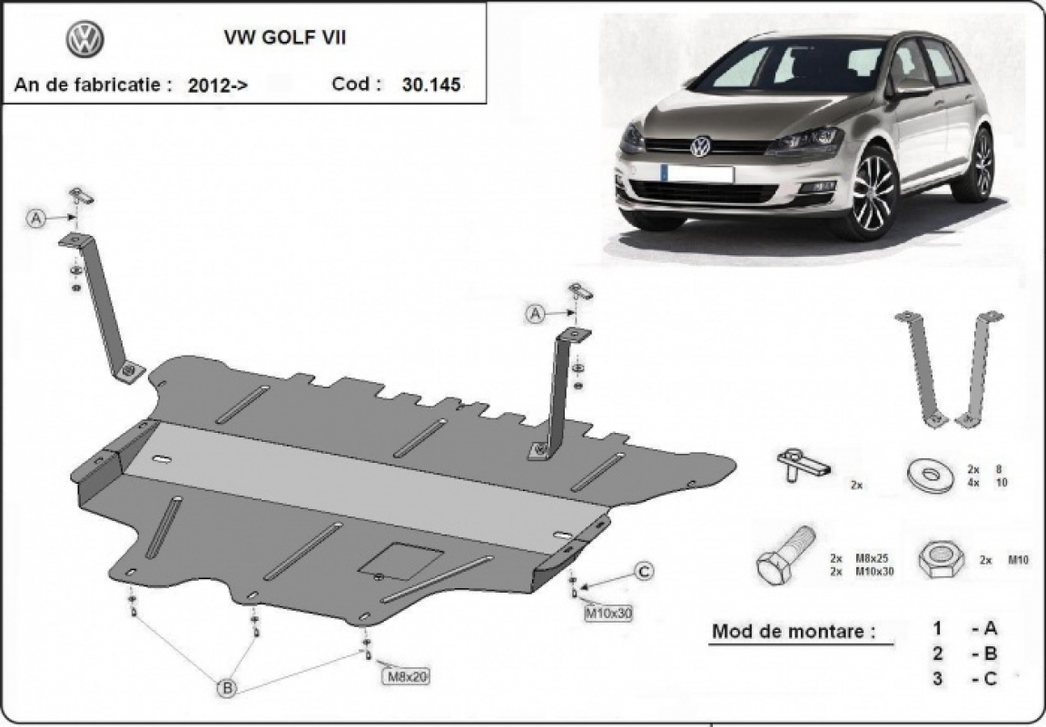 Acél motor, kapcsolószekrény védőlemez VW Golf 7 (2012-2020)