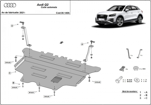 Acél motorvédő lemezünk a következőket védi: motor, kapcsolószekrény, radiátor, első lökharító A motorvédő lemez új, és tökéletesen illeszkedik a Audi Q2 összes 2021 és 2026 között gyártott változatához. 2 mm vastag Acéllemezből készült. Gyárilag kialakított pontokhoz csatlakozik. Méretpontos, A38 H2H acéllemez Minden szükséges tartozék és csavar a csomagban! Minden motorvédőlemezünk porszórt bevonattal van ellátva(porfestett felület), hogy megakadályozza a korróziót. Méretpontos acél lemezekből készül. |