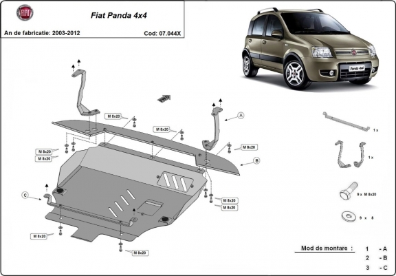 Acél motor, sebességváltó, hűtő, első lökhárító védőlemez Fiat Panda 4x4 (2003-2012)