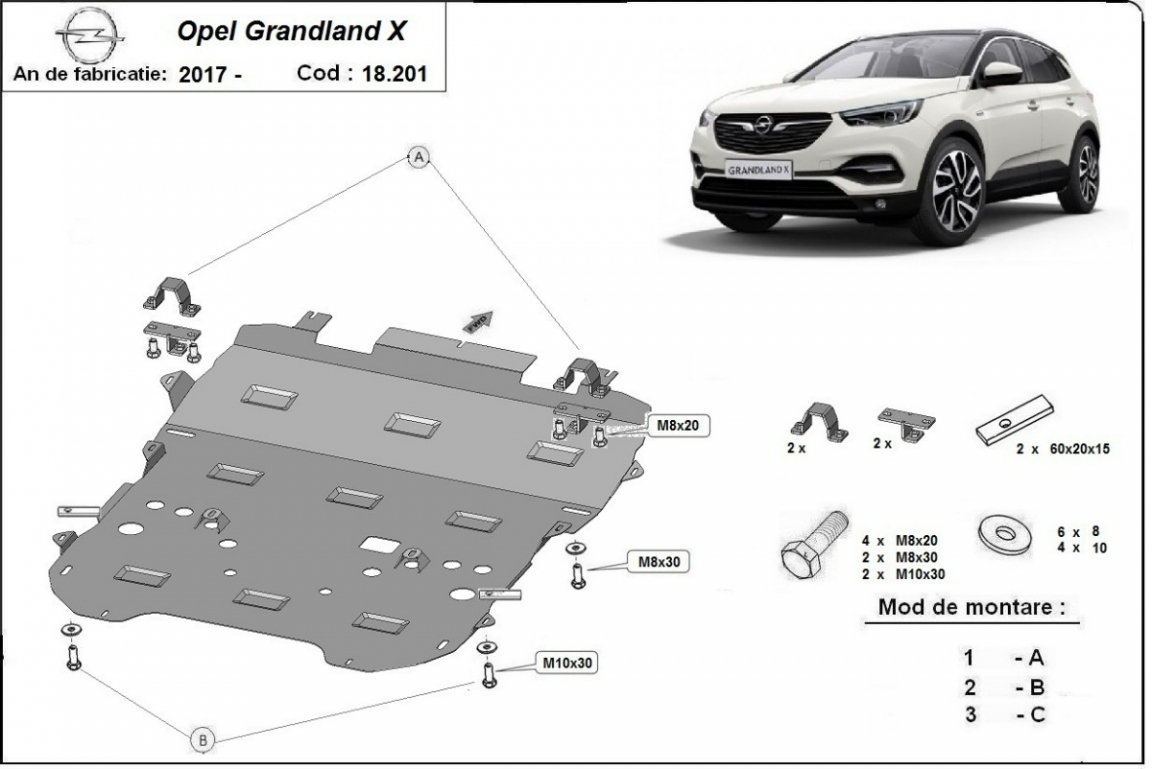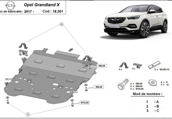 Acél motor, sebességváltó, hűtő, első lökhárító védőlemez Opel Grandland X