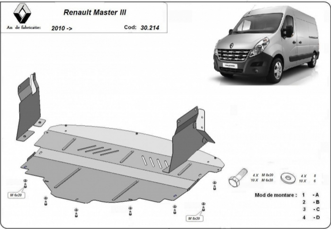 Acél motor, sebességváltó, hűtő, első lökhárító védőlemez Renault Master 3