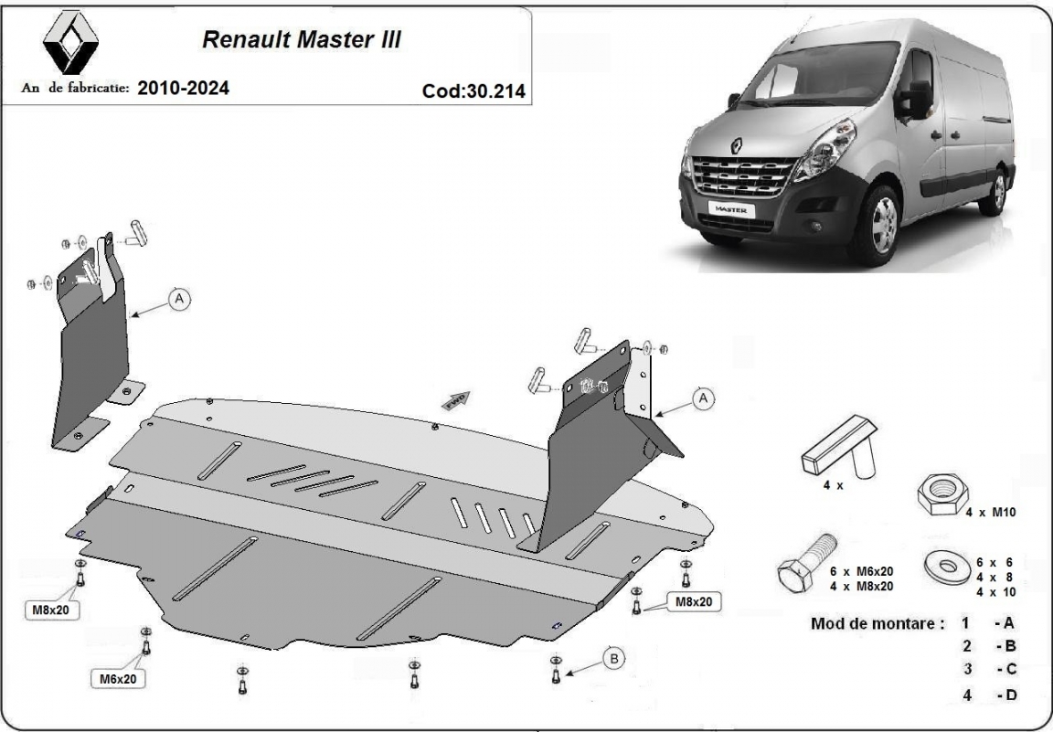 Acél motor, sebességváltó, hűtő, első lökhárító védőlemez Renault Master 3 (2010-2024)