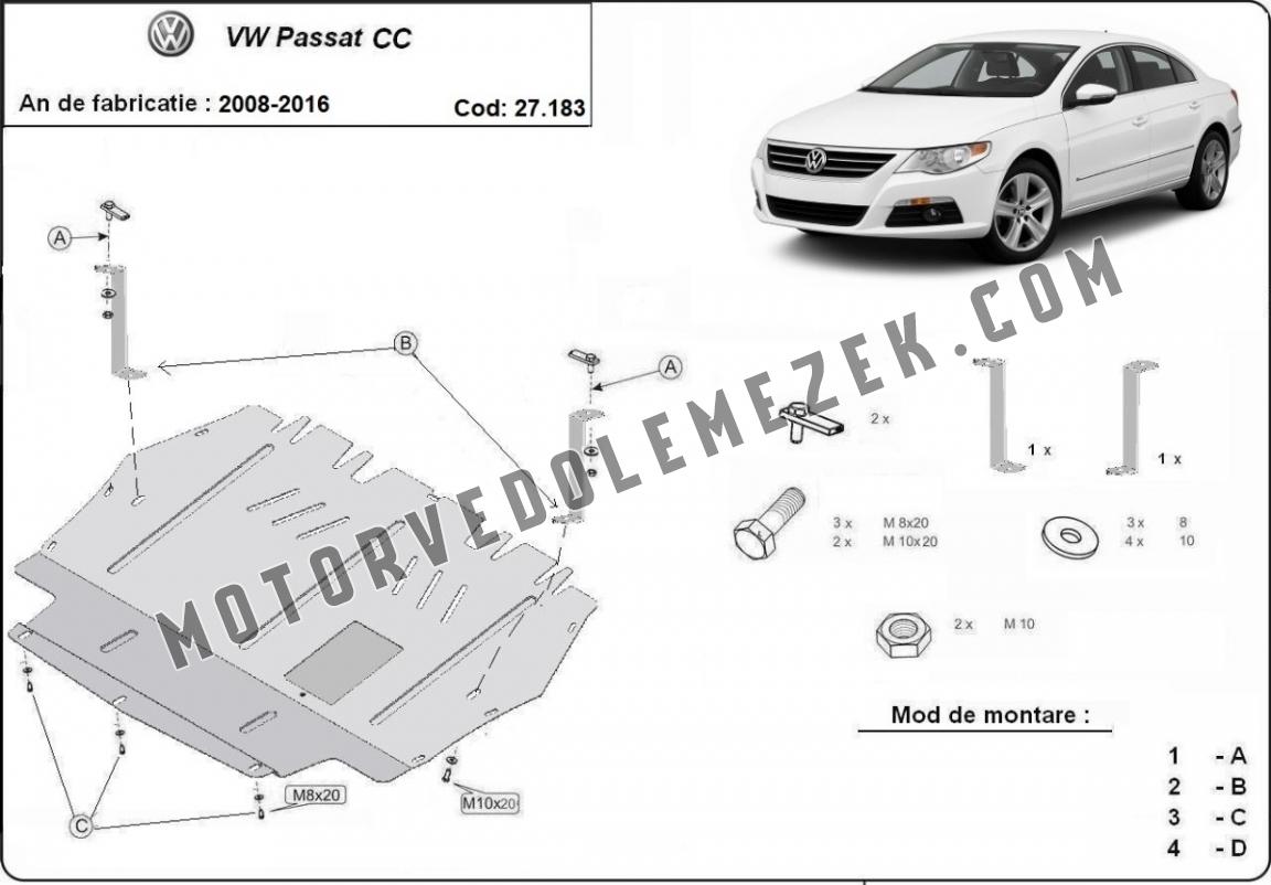 Acél motor, sebbeségváltó, hütő, első lökhárító védőlemez VW Passat CC