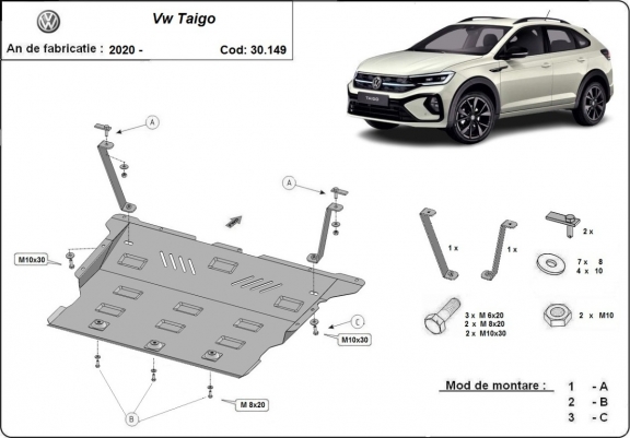 Acél motor, sebességváltó, hűtő, első lökhárító védőlemez VW Taigo (2020-2026)