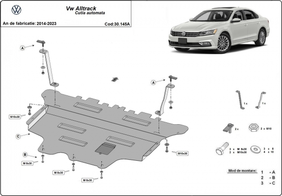 | Minden autóban gyári csavarlyukak vannak a motorvédő lemez felszereléséhez, ami nagyon egyszerűvé teszi a felszerelést. Ezt megteheti saját maga, vagy bármely autószervizben. |