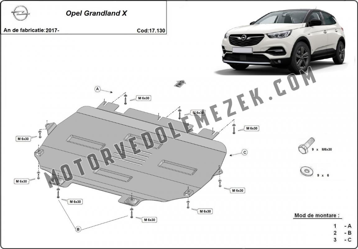 Acél motor, sebbeségváltó, hütő védőlemez Opel Grandland X (2017-2025)