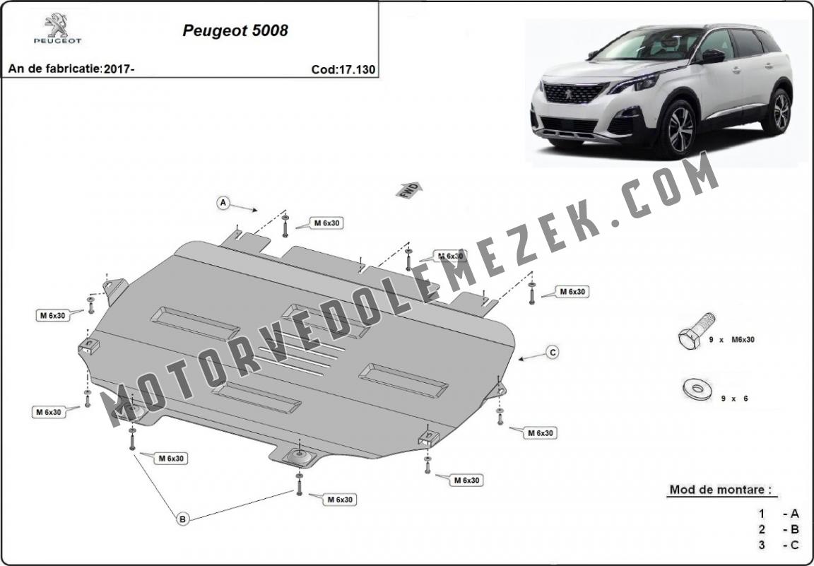 Acél motor, sebbeségváltó, hütő védőlemez Peugeot 5008 (2017-2025)