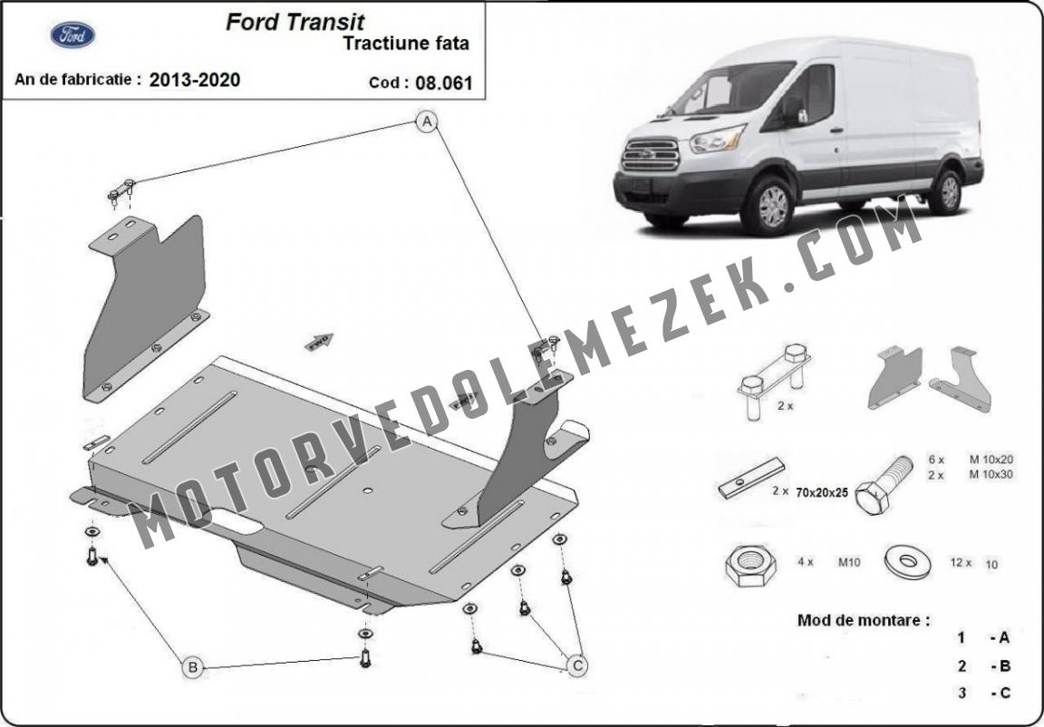 Acél motor, sebbeségváltó védőlemez Ford Transit - FWD (2013-2020)