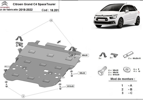 Acél motor,váltó védőlemez Citroen Grand C4 SpaceTourer (2018-2020)