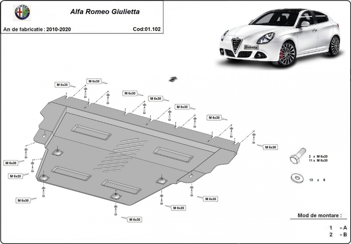 Acél motorvédő lemez Alfa Romeo Giulietta (2010-2020)
