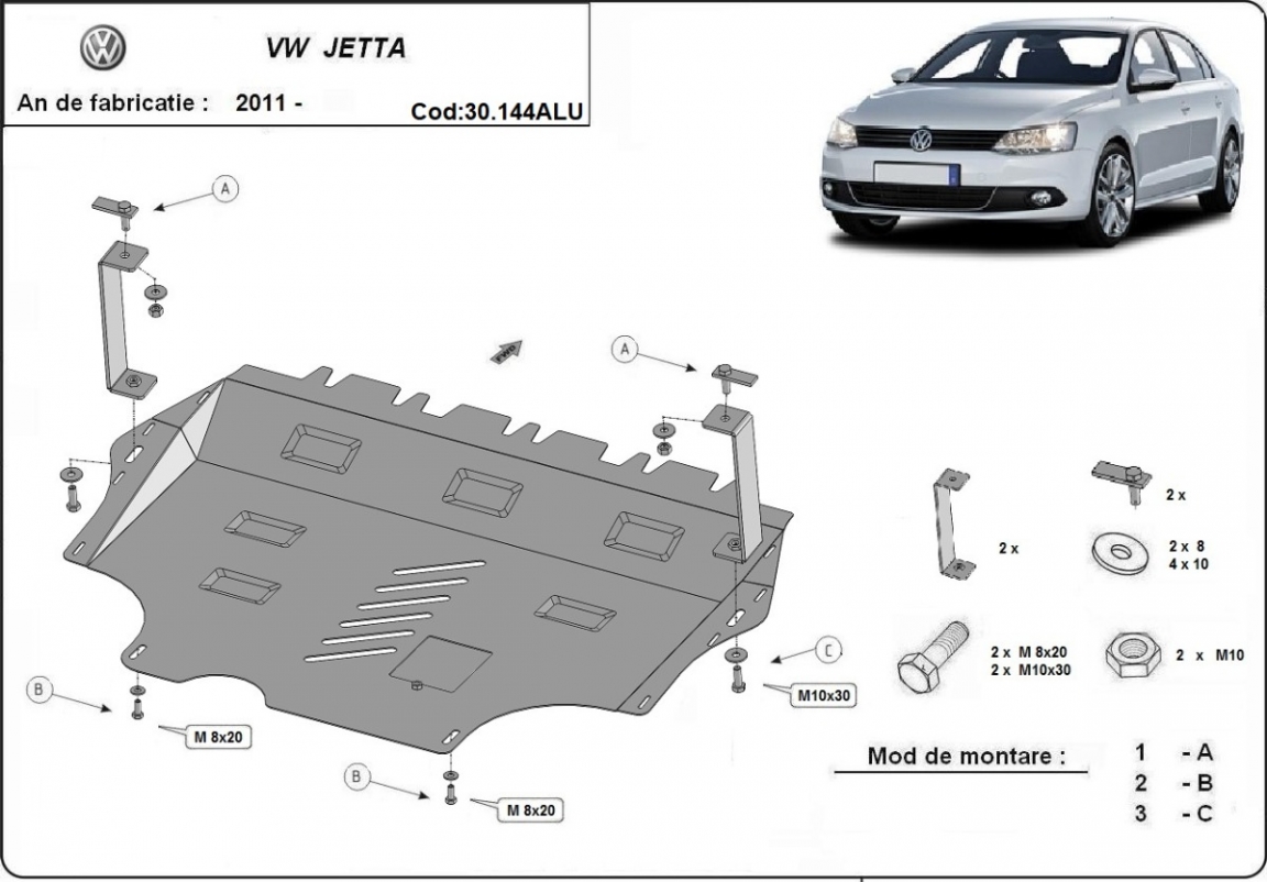 | Minden autóban gyári csavarlyukak vannak a motorvédő lemez felszereléséhez, ami nagyon egyszerűvé teszi a felszerelést. Ezt megteheti saját maga, vagy bármely autószervizben. |