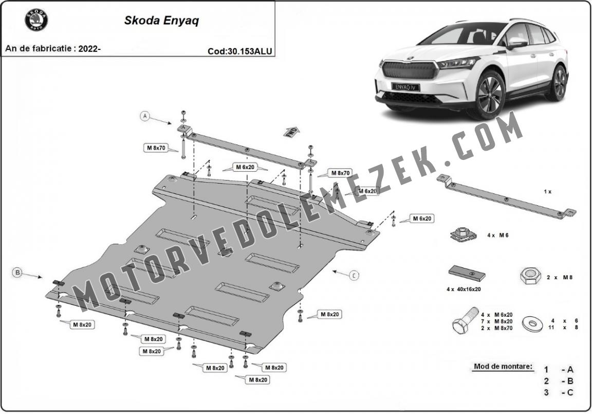 Alumínium motor, kapcsolószekrény, hütő védőlemez Skoda Enyaq (2022-2025)