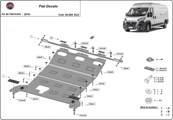 Alumínium motor, kapcsolószekrény, hűtő védőlemez Fiat Ducato (2016-2026)