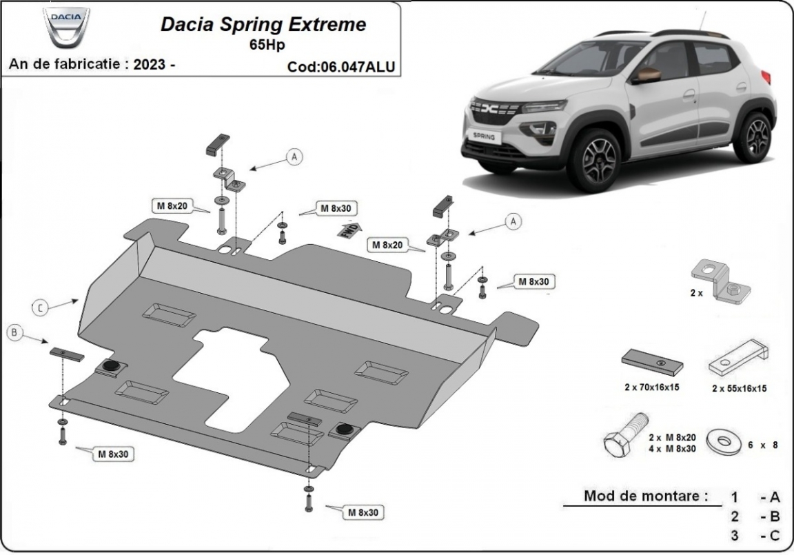 Alumínium motor, kapcsolószekrény védőlemez Dacia Spring Extreme