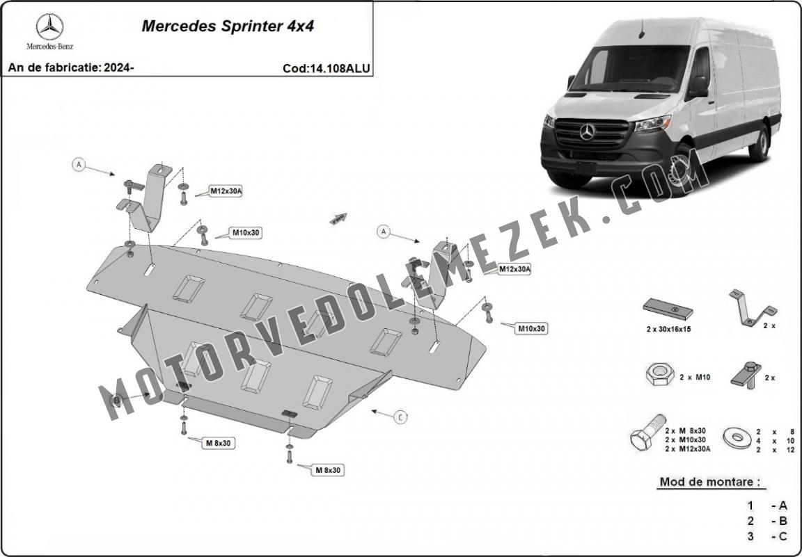 Alumínium motor, kapcsolószekrény védőlemez Mercedes Sprinter 907 4x4 (2024-2025)