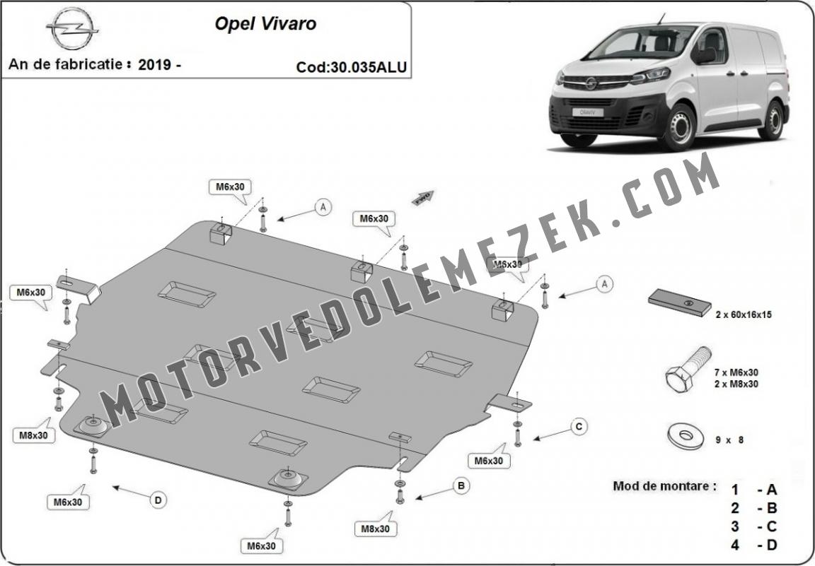 Aluminium motor, kapcsolószekrény védőlemez Opel Vivaro (2019-2026)