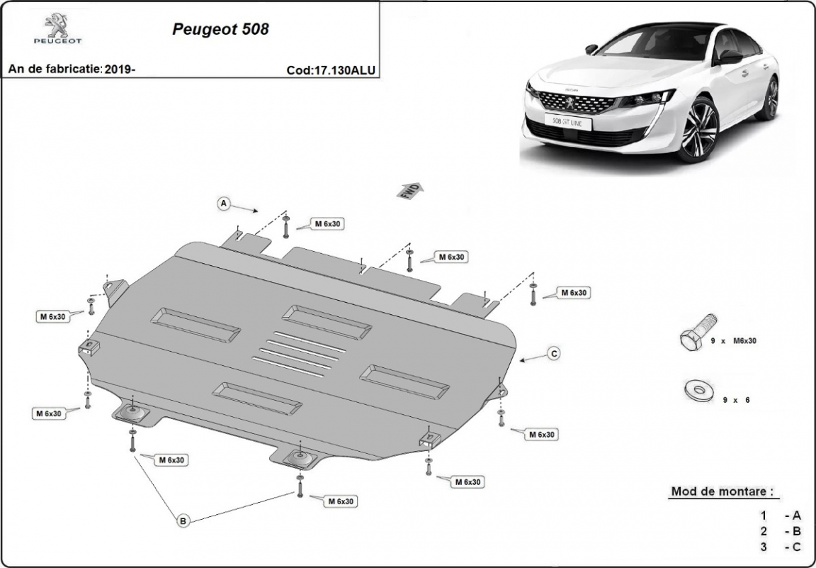 Aluminium motor, kapcsolószekrény védőlemez Peugeot 508 (2019-2026)